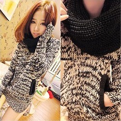1枚でカッコ可愛くキマるスヌード付ロングセーター!おすすめです♪