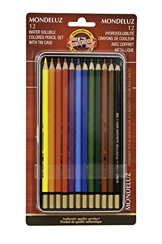 Koh-I-Noor Mondeluz Aquarelle Watercolor Pencil Set, 12 Assorted Colored Pencils in Tin & Blister-Carded (FA3722.12BC)