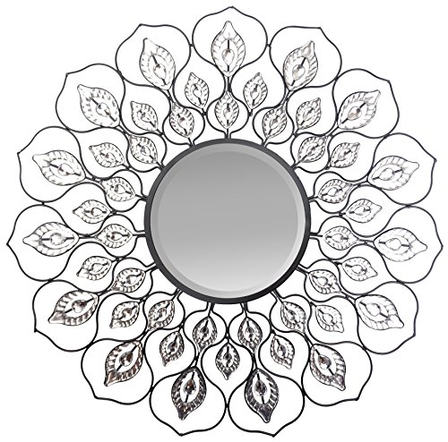 Lulu Decor, Decorative Lotus Wall Mirror, metal wall mirror with crystal leaves design, frame diameter 23", beveled mirror measures 11", perfect for housewarming gift, hoiliday gift (L21MC)