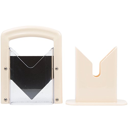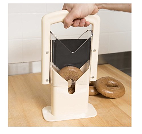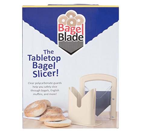 Studio : Bagel Blade Publisher : Bagel Blade Product Description Slice bagels in half with ease when you use this Bagel Blade beige bagel slicer! Designed to part both large and small bagels with precision, this Bagel Blade bagel slicer gives you a cleaner cut than a knife, in a fraction of the time! Including a protective shield, reliable blade, and easy-grip handle, this slicer is safe to use and durable enough to withstand daily light-duty use! 0