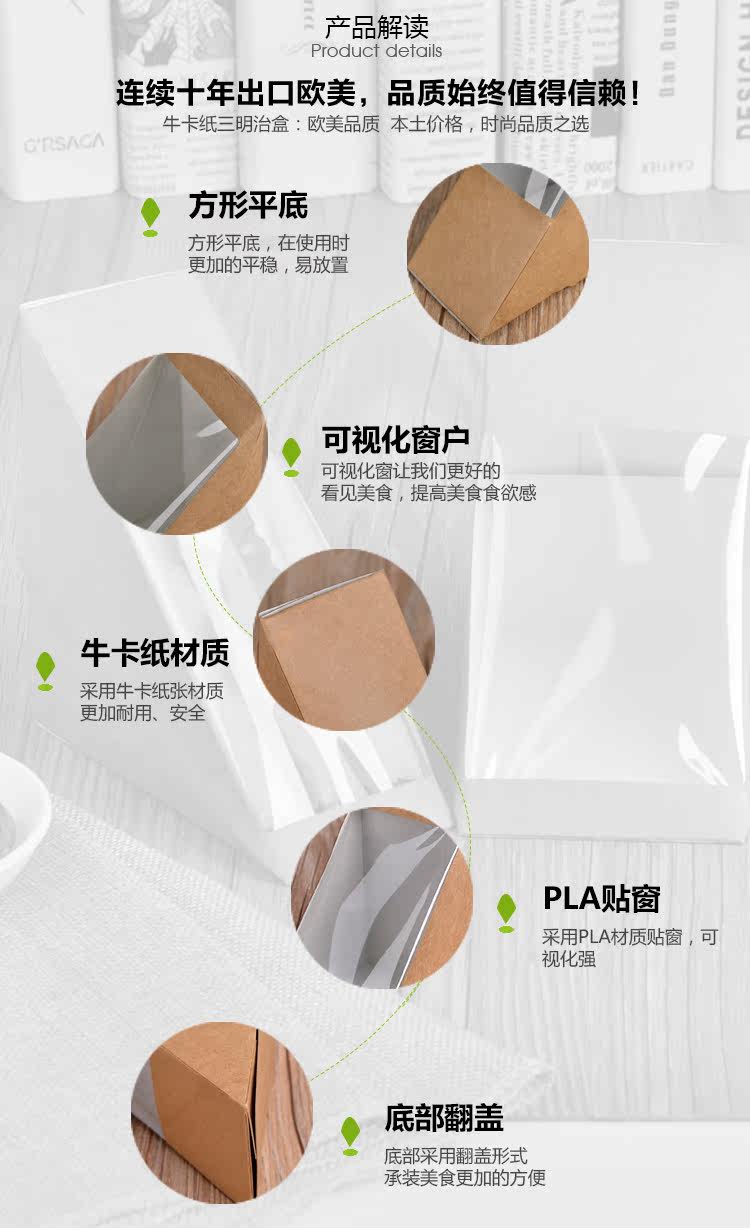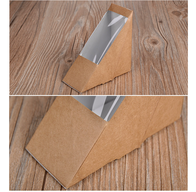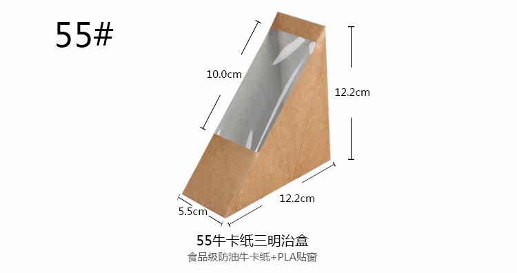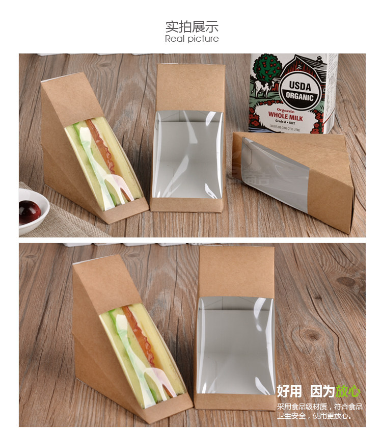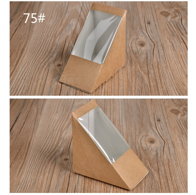 牛皮纸三明治盒纸三文治打包盒开窗食品包装外卖盒100只