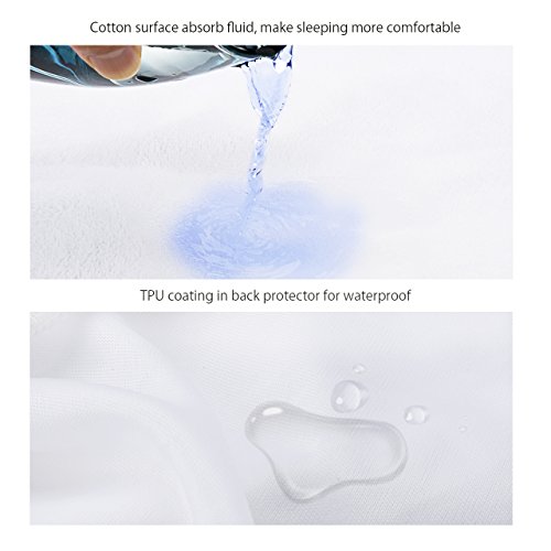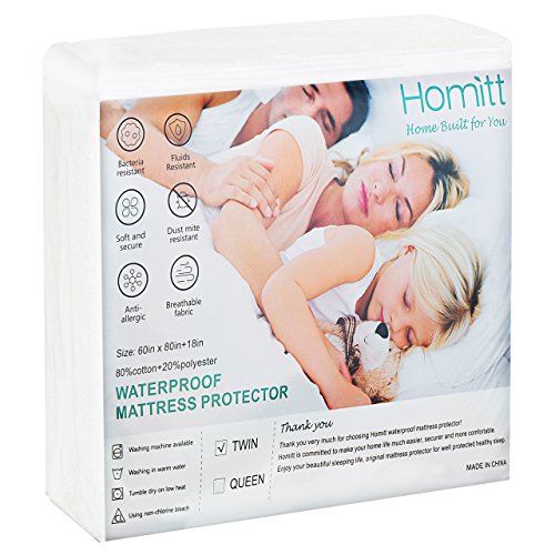 -. Feature : COTTON MATTRESS PROTECTOR: Twin mattress protector is made of 80% cotton and 20% polyester, perfect size 39" x 75"- fits up to 14" deep makes full cover for mattress. / WATERPROOF MATTRESS PROTECTOR: Different from general mattress cover, Homitt bed protector designed with two layer, cotton surface on top layer and TUP coating at bottom layer. Prevent the mattress from water, urine, sweat, or other liquid. / HEALTH FOR SLEEPING: High quality cotton and polyester protect against bugs, insects, allergens bacteria and dust mites, bring health and comfortable touch for skin, good for improving sleeping. Perfect for all people, including allergy sufferers, children, elder or pets. / ELASTIC COVER: 360 Degree of elastic design on the back, easy and quick to full cover twin mattress sheet protector. One people is enough to do this job. / WARRANTY: Please be advised that Homitt has 12 Months Warranty and 60 Days Money Back Guarantee.