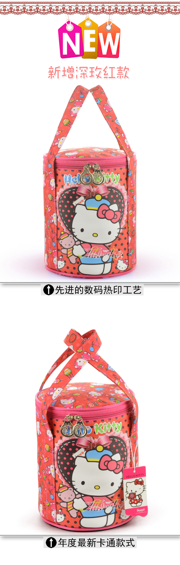 漫画防水ランチボックスバッグラウンドランチバッグKT収納化粧品バッグ子供のハンドバッグ製品素材:ホットスタンプジャカード素材+防水オックスフォード布+金属+プラスチック+その他サイズ:↓◆ベルトの高さは約36.5cm◆パッケージの高さは約21.5cm◆チューブの直径は約17cm◆ベルトの長さは約43cm◆各重量は165〜180gです...