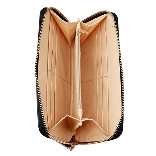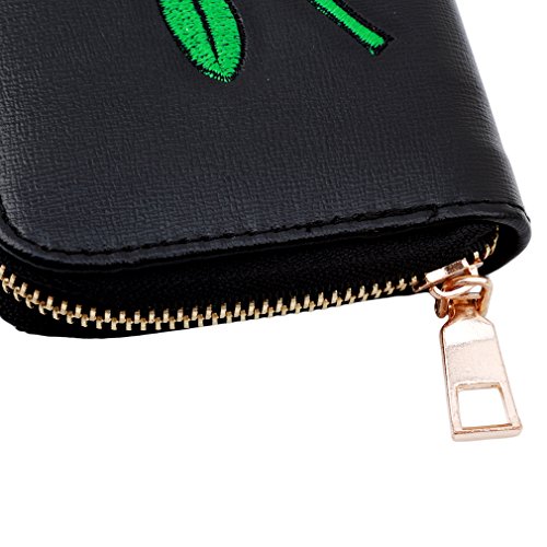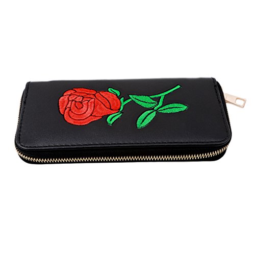 SONG LIN Women Girls Rose Embroidered Card Wallet Handbag Long Purse Cluthbag (Black)