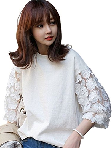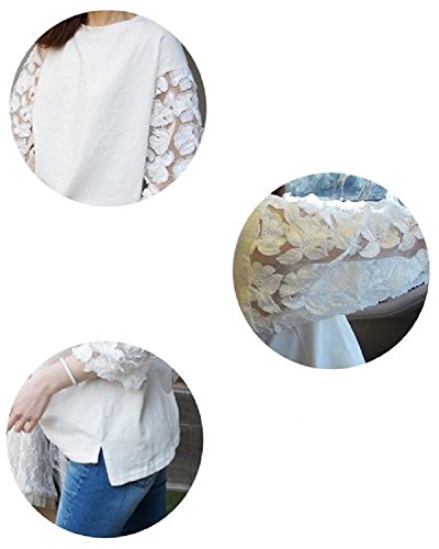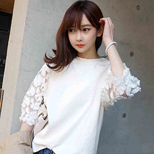 -. Feature : 袖部分の花柄のレース仕様がとても可愛い、白色の清潔感溢れるトップスです / フェニミンで個性的なデザインながら、デニム スカート パンツ ズボンにも合わせやすいです / Tシャツ感覚で着こなせる、インナーでもアウターでも活用できます。 / 飽きのこない トップス は、卒園式 卒業式 入園式 入学式 発表会 などのフォーマル シーン や、きれいめ カジュアル の着こなしもできる 可愛い トップス です。女性らしい 清楚な 印象 で、上質 な仕上がりになっています。