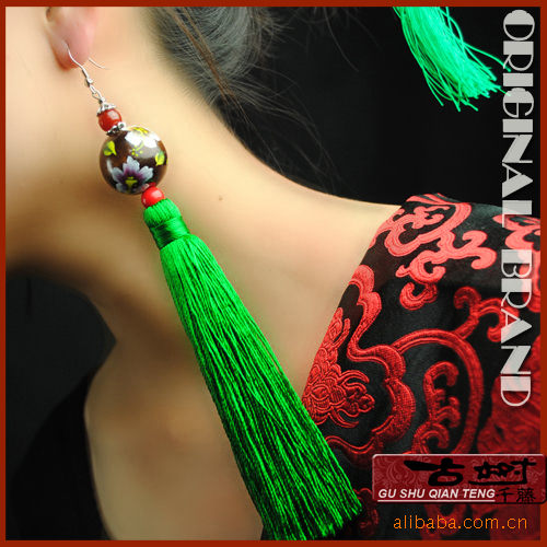 材质:手工彩绘木珠、玛瑙、丝线 流苏