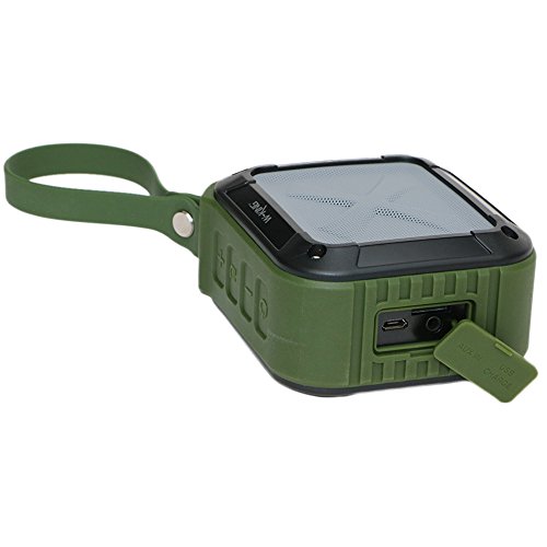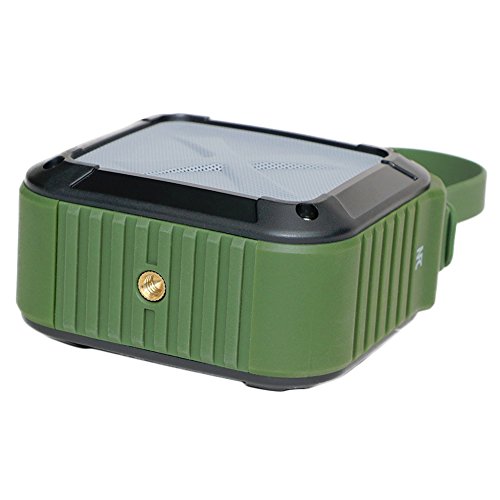 -. Feature : INCLUDES A FREE PREMIUM MOUNT UNLIKE ANY OTHER OFFER which gives the ultimate attachment for the shower/bath and car windscreen. You now have the best quality product for both the bathroom and to take out, walking, to your sports, the pool, beach, BBQ, camping, travel, garden or just indoors at home / SUPERIOR SOUND, BASS AND POWER IMPORTANT TO YOU? You are in the right place as this is DESIGNED IN CALIFORNIA by music lovers you can trust. You won't believe the clarity and loudness that comes from this 5W, small and light 9.5oz product - perfect for you and loud enough for parties / KEEP YOUR MUSIC PLAYING FOR HOURS - an incredible 12 hours long of playtime at 80% volume and fully rechargeable in only 3 hours. A longer playing time, faster recharge and lighter than other manufacturers. Oh no! You need to work? Never mind - plug into your laptop / PC as speakers or use as a speakerphone - great for conference calls / SUPER EASY UNIVERSAL CONNECTIVITY - comes with 4.1 connectivity unlike most of the competition. This means easy pairing with all devices such as iPhones, Android phones, iPads, tablets and longer battery life for your smartphone / DESIGNED FOR YOUR LIFESTYLE AND BACKED UP BY A 12 MONTH WARRANTY - designed to withstand accidental full immersion water, certified as dust tight - so the beach or anywhere is no problem - sandproof, weatherproof and enclosed inside a tough, red impact resistant green casing. We want the music with you always from relaxed to your most challenging pursuits! All protected by a guaranteed 12 month, no questions asked warranty!