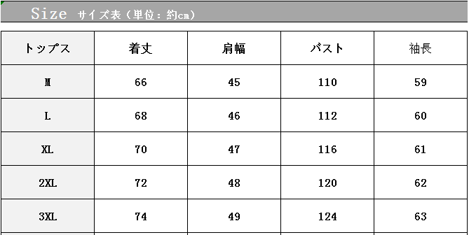 【3XL】バスト約124cm 丈約74cm 肩幅約49cm 袖丈約63cm