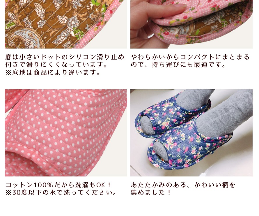 洗えるスリッパ!かわいいキルトのルームシューズです。