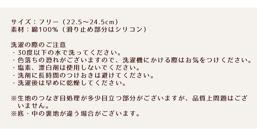 素材:綿100%(滑り止め部分はシリコン)