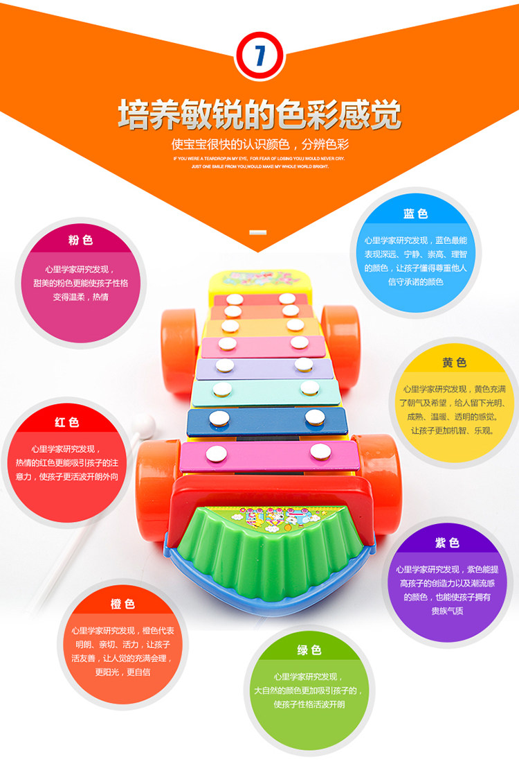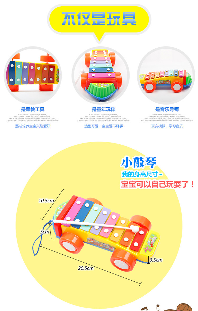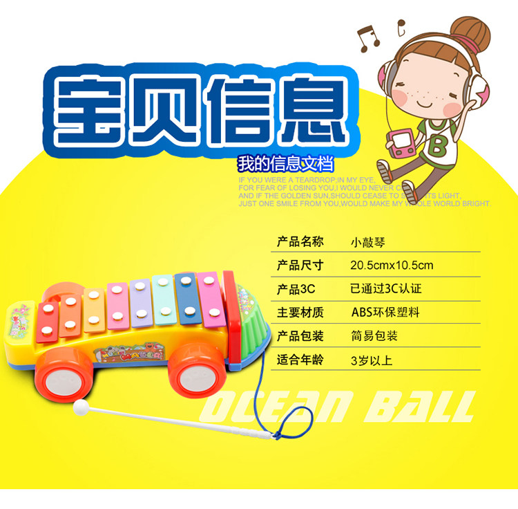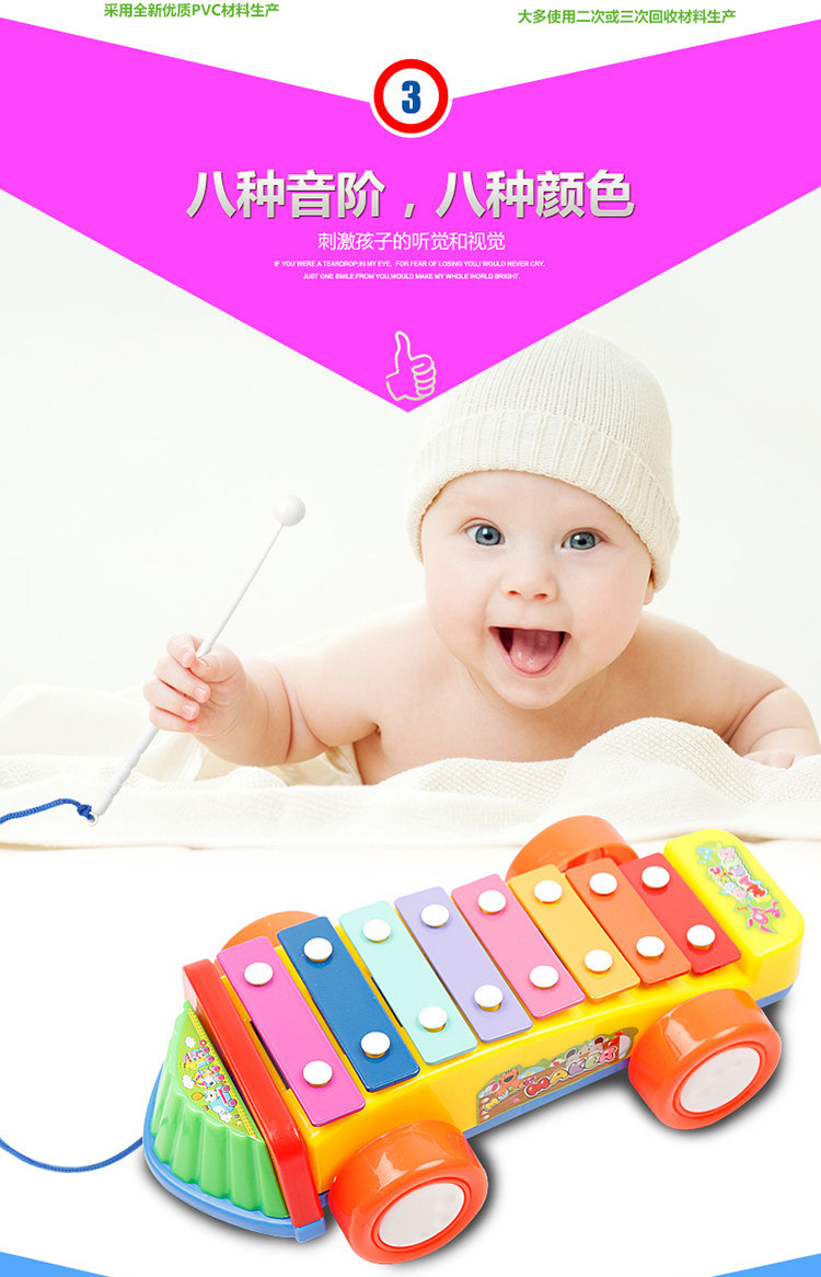儿童玩具女孩小木琴八音拖拉手敲琴婴幼儿宝宝音乐玩具 1-3岁