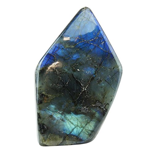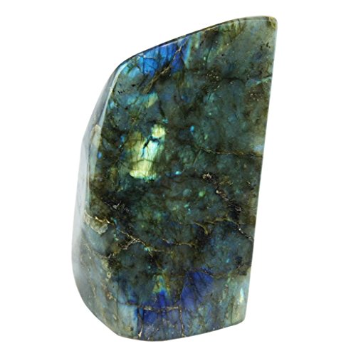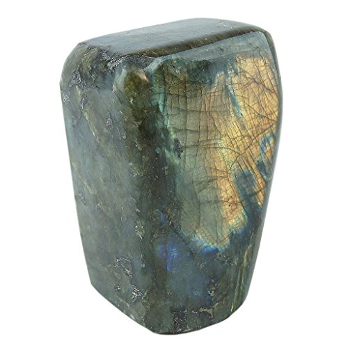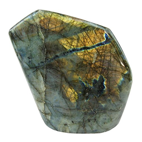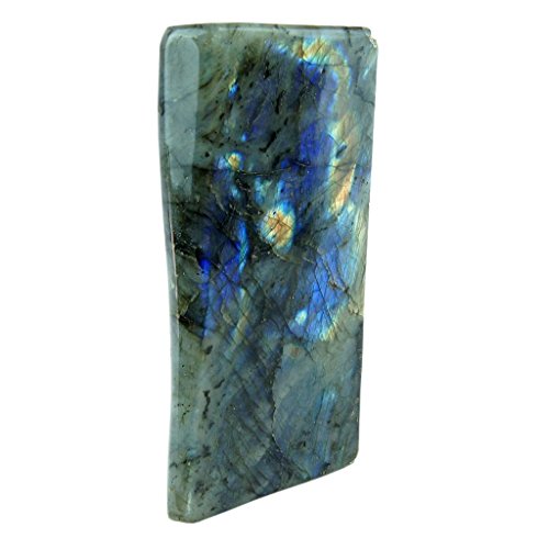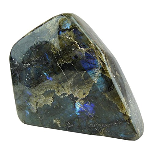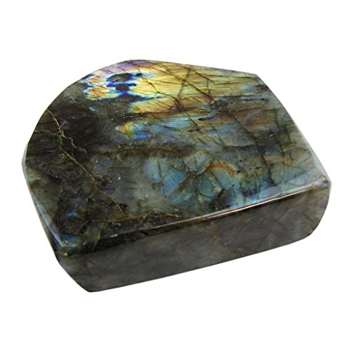 The dimensions of these stones are varied, but usually can be contained in 5" x 5" x 6" area. Labradorite is one of the most powerful protectors of the mineral kingdom. The healing properties are thought to protect against the foul energies and curses of this realm. It has also been used for guiding one into multi-levels of consciousness and in facilitating visionary experiences. Labradortie is commonly used in transcending and astral projection. This intriguing stone is feldspar mineral, and is an intermediate member of the plagioclase series. As with all plagioclase members the crystal system is triclinic and three directions of cleavage are present two of which form nearly right angle prisms. It occurs as clear, white to gray to green to yellow, blocky to lath shaped grains in common mafic igneous rocks. Labradorescence is a side-effect of the molecular change which occurs in large crystal masses of anorthosite, producing an iridescent play of colors similar to adularescence. This labradorescence, or schiller effect, is the result of light diffraction within the lamellar intergrowths - fine, adjacent layers of the separate materials (lamellae) comprising the whole rock phase - created when conditions do not allow for sufficient diffusion to the materials' equilibrium composition.Feature