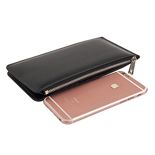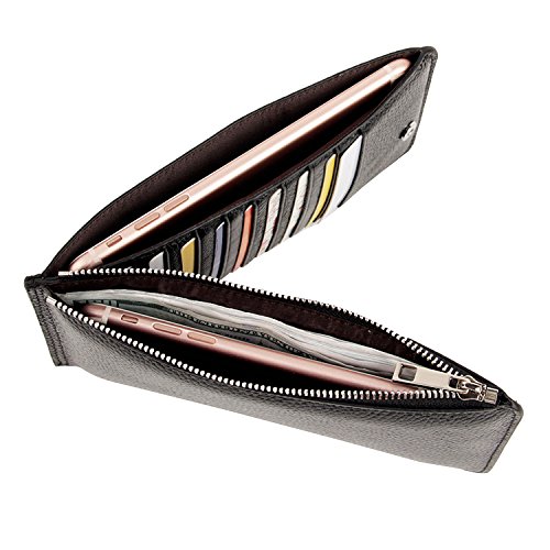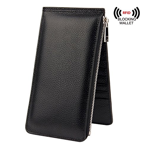 -. Feature : SAFETY & P.R.IVACY - Our wallets are equipped with advanced unique proP.R.Ietary blocking material , which blocks RFID signals and protects the valuable P.R.Ivate information stored on RFID chips from unauthorized scans. This keeps your vital information in driver license, debit cards and credit cards from being stolen. / GENUINE LEATHER - Beautifully crafted in pebble top grain soft cowhide for a noticeable luxurious feel and unmatched durability. Comes With 20 card slots, 1 open pocket and 1 zippered compartment for bill/cash/change/a small cellphone,like iPhone6s / Samsung Galaxy S6. / CLASSIC FUNCTIONAL DESIGN - Measure 7.48" x 3.94" x 0.79" Slim body can be easily placed in front pocket/back pocket. Best choice for avoiding bulky looking wallets. Longer time we use, nicer it becomes. / FUNCTIONAL FOR YOUR BUSY LIFE - Use them every day to Shield against unauthorized RFID, NFC scans as reported in the media -- Use them if you spend time vacation or live overseas -- Protect yourself from strangers in public places -Great while using public transport or just in public places / *Attention:AINIMOER is an US registered trademark,unauthorized sale without permission,we will investigated for legal responsibility.