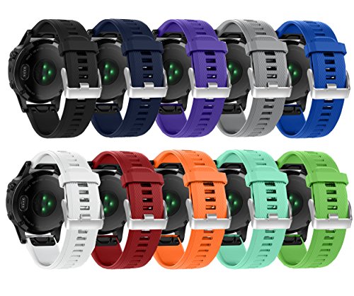 Garmin Fenix 5 Quick Fit 22MM Watch Band, BeneStellar Soft Silicone Replacement Watch Band for Garmin Fenix 5 / Quatix 5 / Quatix 5 Sapphire GPS Smart Watch (10 colors)