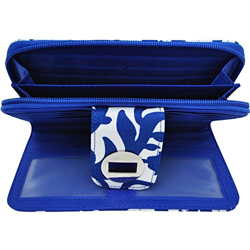 Twist Lock Closure, Rear Button Closure Pocket, One side has 7 card slots, 3 open pockets, Other Side has 5 card slots, clear ID slot and 1 Open Pocket, Material: Canvas, Dimensions: 7" x 4½" x 1"