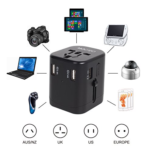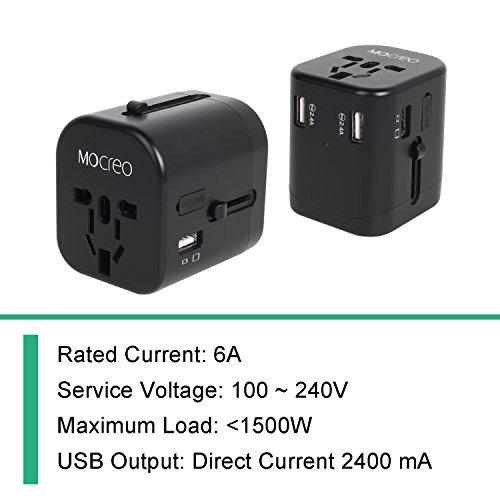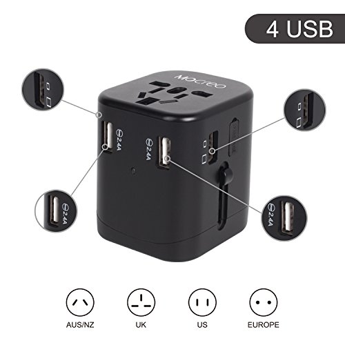 Universal Worldwide Travel Power Adapter with 4 USB Port, MOCREO USB Wall Charge (Black-4 USB)