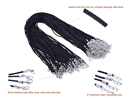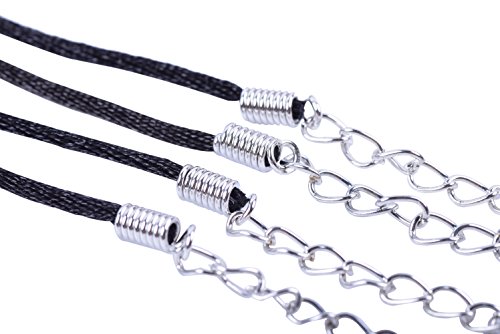 KONMAY 50pcs Black Satin Silk Necklace Cord 2.0mm/20'' with 2'' Extension Chain Lead&nickel Free