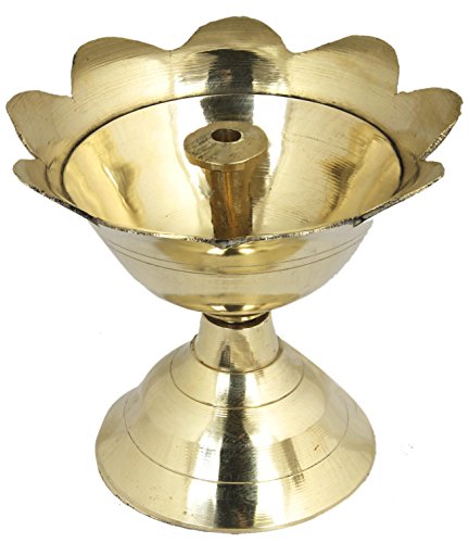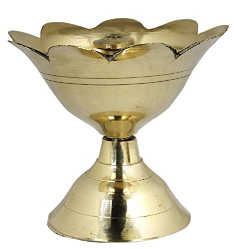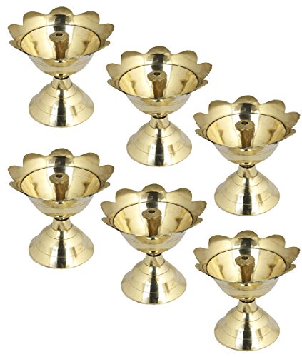 Set of 6 Handmade Indian Puja Brass Oil Lamp - Diya Wick Lamp Night Light Candle -Dia 2.5 Inch
