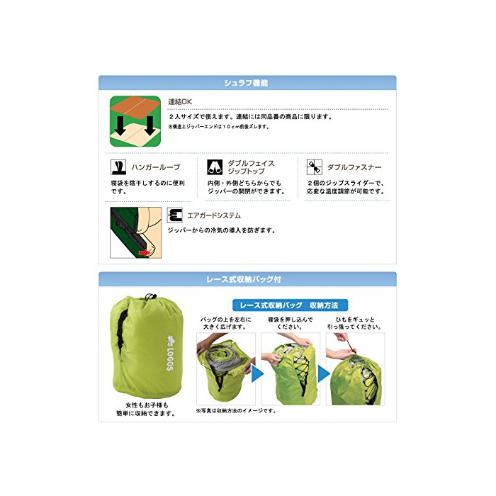 원본상품명: ロゴス(LOGOS) 丸洗い?袋フィ?ルダ?2 ライトグリ?ン [最低使用?度2度] 封筒型 ?納袋付き