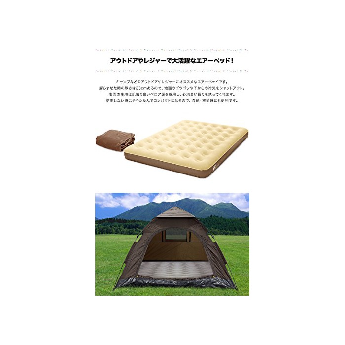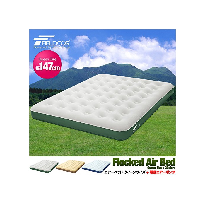원본상품명: FIELDOOR エアベッド クイ?ンサイズ &バッテリ?式電動エア?ポンプセット (約)幅147cm×?行き198cm×厚さ23cm グレ?×グリ?ン