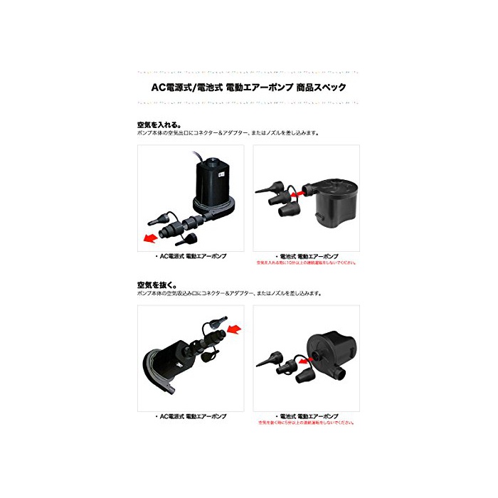 에어 펌프: 사이즈(에어 펌프) (약)120mm×115mm 어댑터 에어 펌프: 사이즈 (약)소 : 7-8mm / 중 : 17-18mm / 대 : 22-23mm 사용 전지 단일 건전지×4개 사용(별매) 중량 (약)300g ※전지 포함하지 않아 재질 ABS수지PE
