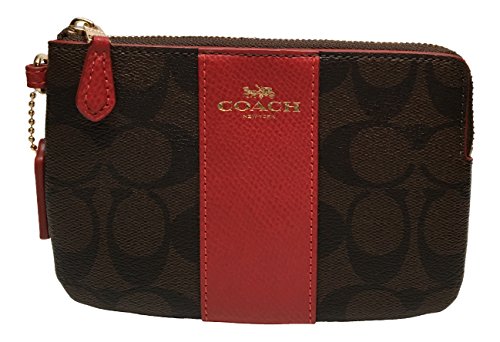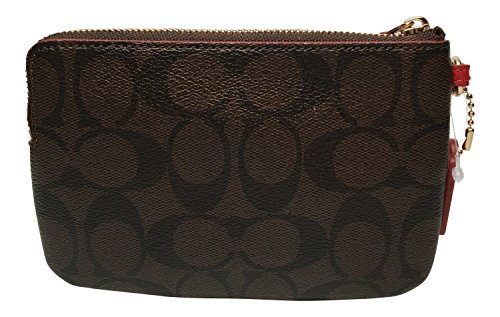 -. Title : Signature PVC Corner Zip Wristlet Brown with Red Stripe 54629