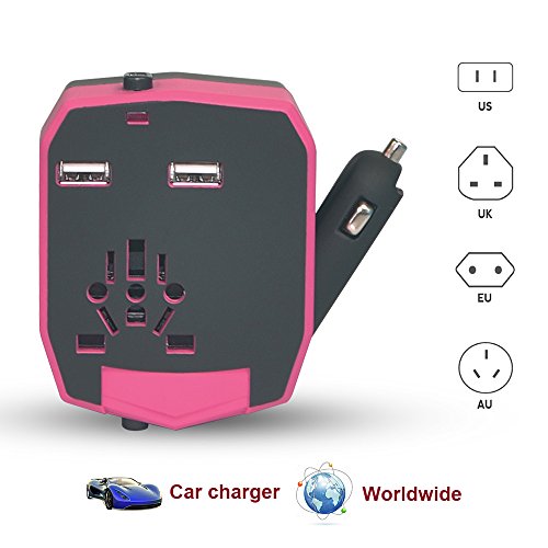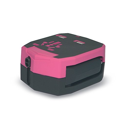 Lauco All-In-One Worldwide Travel Charger Universal Wall Charger Adapter Plug [US UK EU AU] with Dual USB Ports, Fuse Protection Power Converters Suitable for 150+ Countries, Red