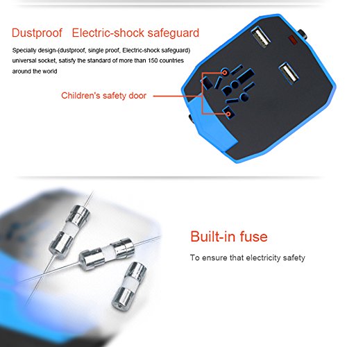 AVAILABLE IN 150 COUNTRIES - All-in-one world travel adapter with UK/EU/US/AUS plugs works in worldwide: United Kingdom, Europe, United States, Australia, Canada, Middle East, South America, Asia, The Caribbean, Great Britain ,Ireland, Africa, Hong Kong, Singapore, Fiji, New Zealand, China, etc.