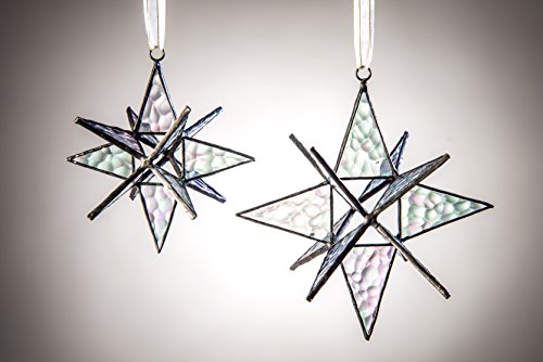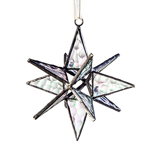 J Devlin Orn 252 Clear Iridized Hanging Glass Moravian Star Ornament, Small 4 1/2 x 4 1/2