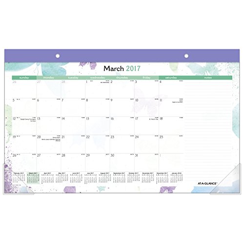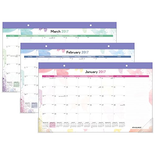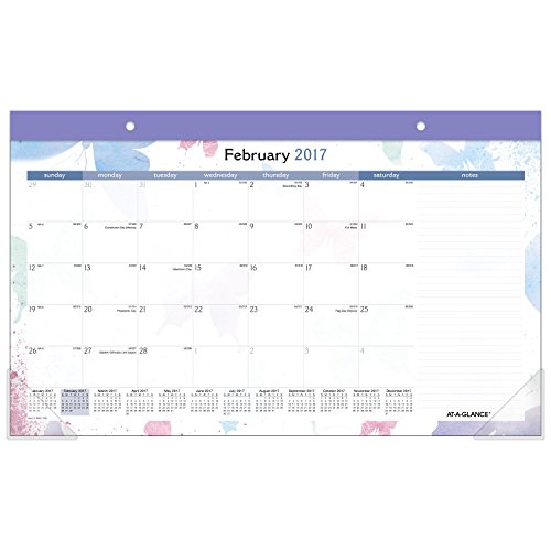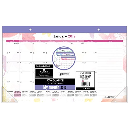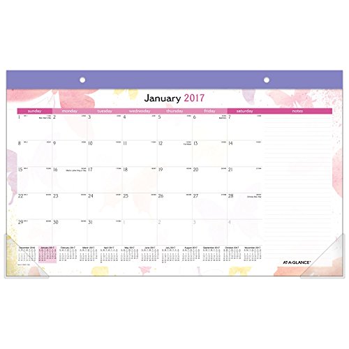 -. Title : AT-A-GLANCE Desk Pad Calendar 2017, Monthly, Compact, 17-3/4 x 10-7/8", Watercolors (SK91-705)
