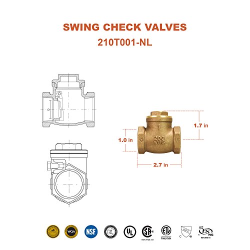 Everflow 210T001-NL 1-Inch Lead Free Brass Swing Check Valve with Female NPT Threaded, 200 PSI WOG & 125 PSI SWP, Brass Construction, Higher Corrosion Resistance Economical, Durable & Easy to Install