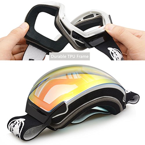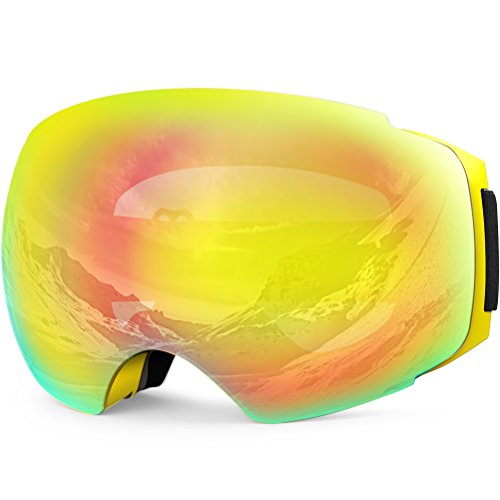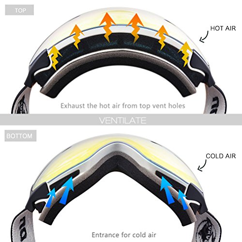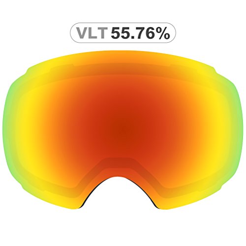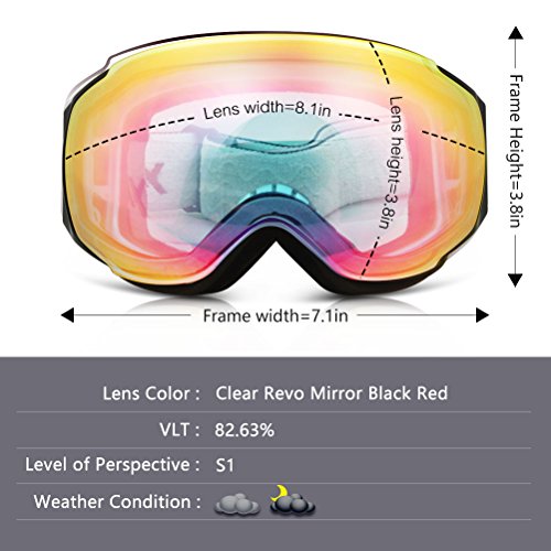 100% UV400 Protection and Anti-fog - Full REVO finish and coating for UV400 protection and anti-fog deliver a pair of ski goggles with super clear vision, full eye's protection and fog-free, a smooth skiing experience with clear and clean view on the slope.