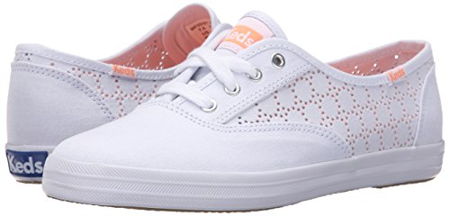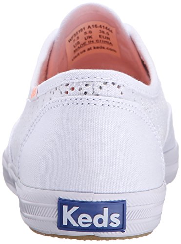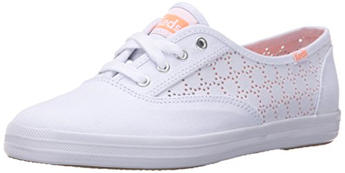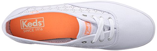 The keds champion perf features a beautiful heather canvas and a circular perforation pattern.