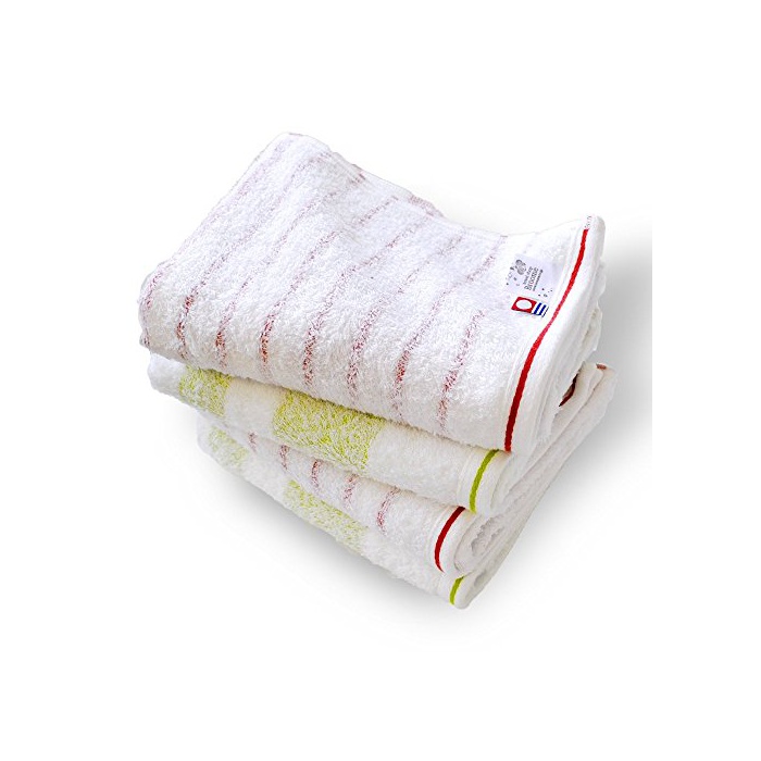 타올 숍 블룸 블룸 이마바리 타올 내츄럴 보더 페이스 타올 4 매세트 적녹색