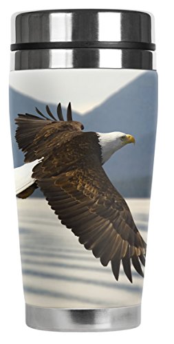Mugzie 953-MAX "Flying Eagle" Stainless Steel Travel Mug with Insulated Wetsuit Cover, 20 oz, Black