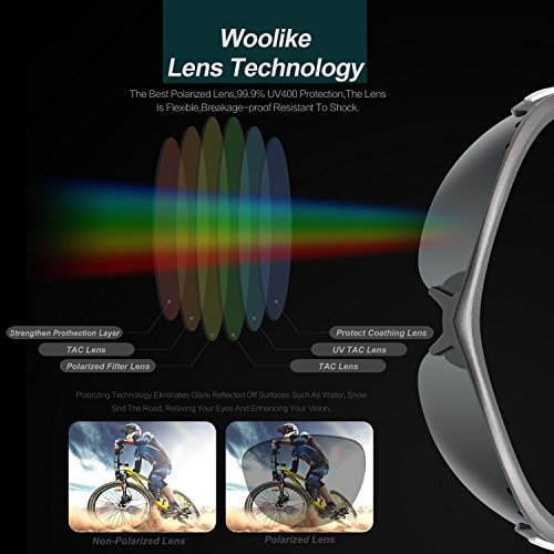 Woolike Sports Sunglasses Keep your eyes protected from the sun year round with Woolike sunglasses. Available in bright, bold colors, our sunglasses block 100% of the sun's harmful UVA & UVB rays and meet AOA (American Optometric Association) specifications for non-prescription sunglasses. Made of super light PC , they also feature polycarbonate impact & scratch resistant lenses. Polycarbonate impact and scratch resistant. DISCOVER THE WOOLIKE DIFFERENCE Provide The Best Quality Sunglasses With Low Price and Customer Service on Amazon • The super light TR90 frame: You can hardly feel them on your face!