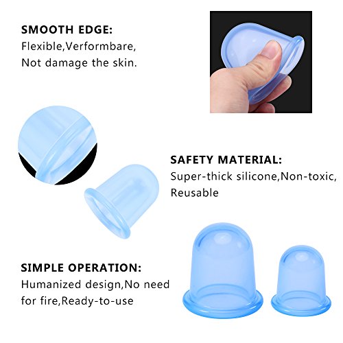 This Silicone Cupping is based on the principle of traditional Chinese medicine therapy, negative pressure, which combines modern science and technology. It is made of environmental macromolecule material, which has no toxicity and no side effects.Help people to relieve fatigue, Anti-aging,dispel rheumatism.It is widely used in family health care, physical therapy, beauty and other aspects. HOW TO USE: 1.Apply cream or nourishing cream or oil to you skin. 2.Press the fingers in the middle of the cupping to make the air out of the cupping. 3.Press the cup's mouth to your skin,then release it with a negative pressure to absorb it. 4.Repeatedly press1-2 times to adjust the suction. 5.Use your hands to move the cup smoothly, in a straight, circular, and zigzag movement. 6.It's best to massage for 5-10 minutes.Operate can according to the instructions. Package Content: 1 Large body cupping (Diameter: 2.76 in / High: 3.15 in) 1 Medium body cupping (Diameter: 2.17 in / High: 2.17in) Color: BLUE NOTICE: 1.Reaction after cupping--purple spots ,blood stasis or red spots appear on the surface of the skin. 2.Some groups are not suitable for cupping therapy, such as heart disease, pregnant women, and patients with skin diseases. Consult a doctor before using if you are indeterminacy. 3.If uncomfortable, please stop using. 0 |