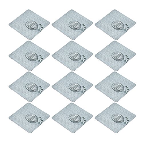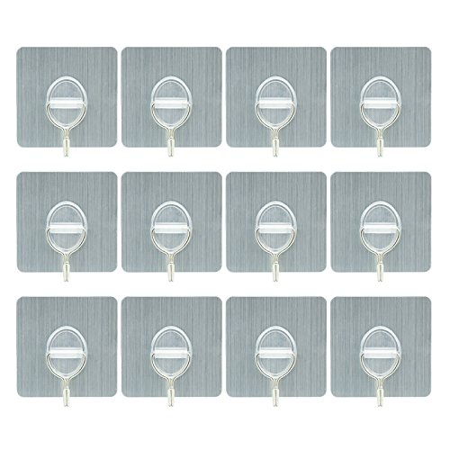 12pc/Lot Transparent Reusable Nail free,Transparent Adhensive Hooks Hook for Kitchen,Storage Room,Tile wall,Bathroom Towel Hooks Waterproof.(13.2lb/6kg,Max) ( Silver)