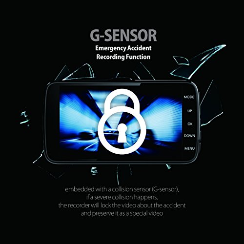 - Emergency accident recording function: embedded with a collision sensor (G-sensor),if a severe collision happens, the recorder will lock the video about the accident and preserve it as a special video.