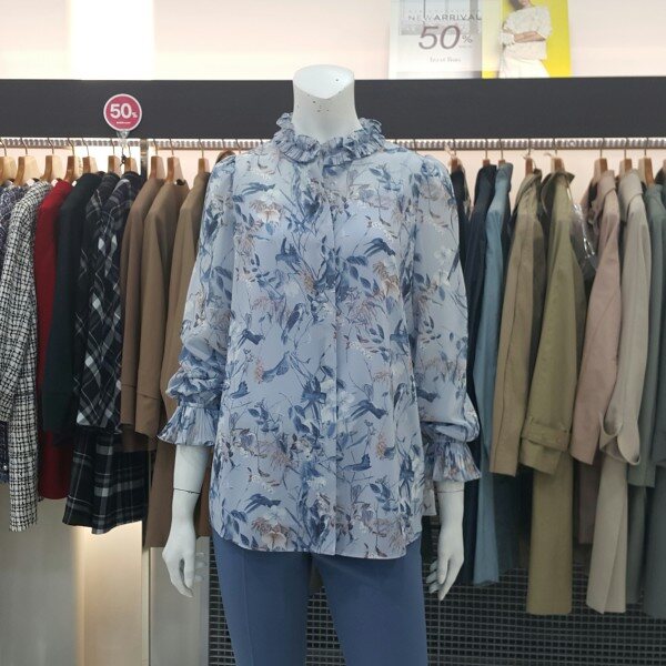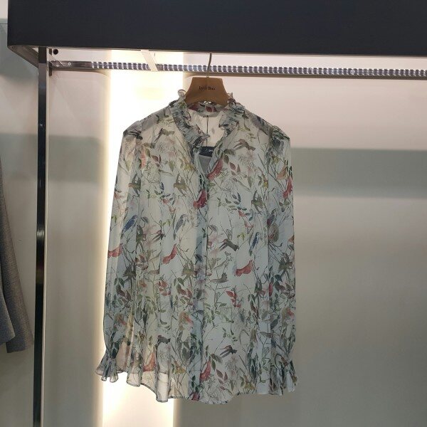 살랑거리는 쉬폰 소재의 버드프린트 블라우스입니다넥라인과 소매부분의 프릴장식이여성스러우며 고급스런디자인입니다속 나시가 있습니다다양한 아이템으로 연출해보세요~