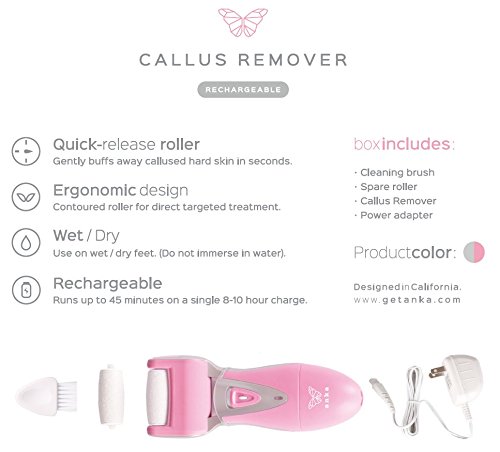 Studio : Anka Publisher : Anka Binding : Health and Beauty Product Description ★ ELEGANT POWER - To say that the callus remover grinder is powerful is an understatement. The grinder spins over a thousand times per minute so all you need is gentle pressure to get the job done. ★ QUICK-RELEASE ROLLER - From our contoured ergonomic design to our quick-release roller grinding head, every part of this product has been carefully designed with you in mind! It is both beautiful and effortless to use ★ SOFT SILKY SKIN - The Anka callus remover gently buffs away rough callused skin, leaving behind smooth silky skin that is irresistible to the touch ★ RECHARGEABLE - No need to replace batteries. Simply charge the callus remover with the included charger and enjoy up to 45 minutes of carefree use ★ WET/DRY USE - Use on wet or dry feet, we do not discriminate. (Do not immerse in water) ★ GUARANTEED PURCHASE - We know you have options here, and we want to make the best choice the easiest one, and that's why we offer a 100% Satisfaction Guarantee! If for any reason our product doesn't meet your standards, just send it back our way for a replacement or a full refund! The choice will be yours! ★ RECOMMENDED USE - Use on dry feet ? Apply moisturizer after use ★ IMPORTANT - Rated IPX5 for water resistant safe to rinse under tap water. DO NOT immerse the device fully in water or use in shower. 0