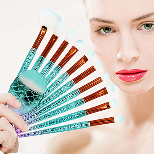 【Work with Any Kind of Makeup】:These mermaid brushes are perfect for liquids, creams or powders to produce a beautiful face and eye makeup application.
