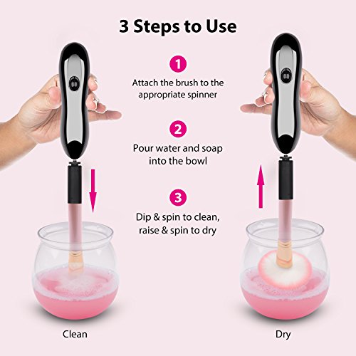 - FAST & EFFECTIVE - Herwiss electronic makeup brush cleaner auto cleans and dries all sizes makeup brushes in seconds, make your brushes keep soft and nice for longer life, also improve your makeup experience.