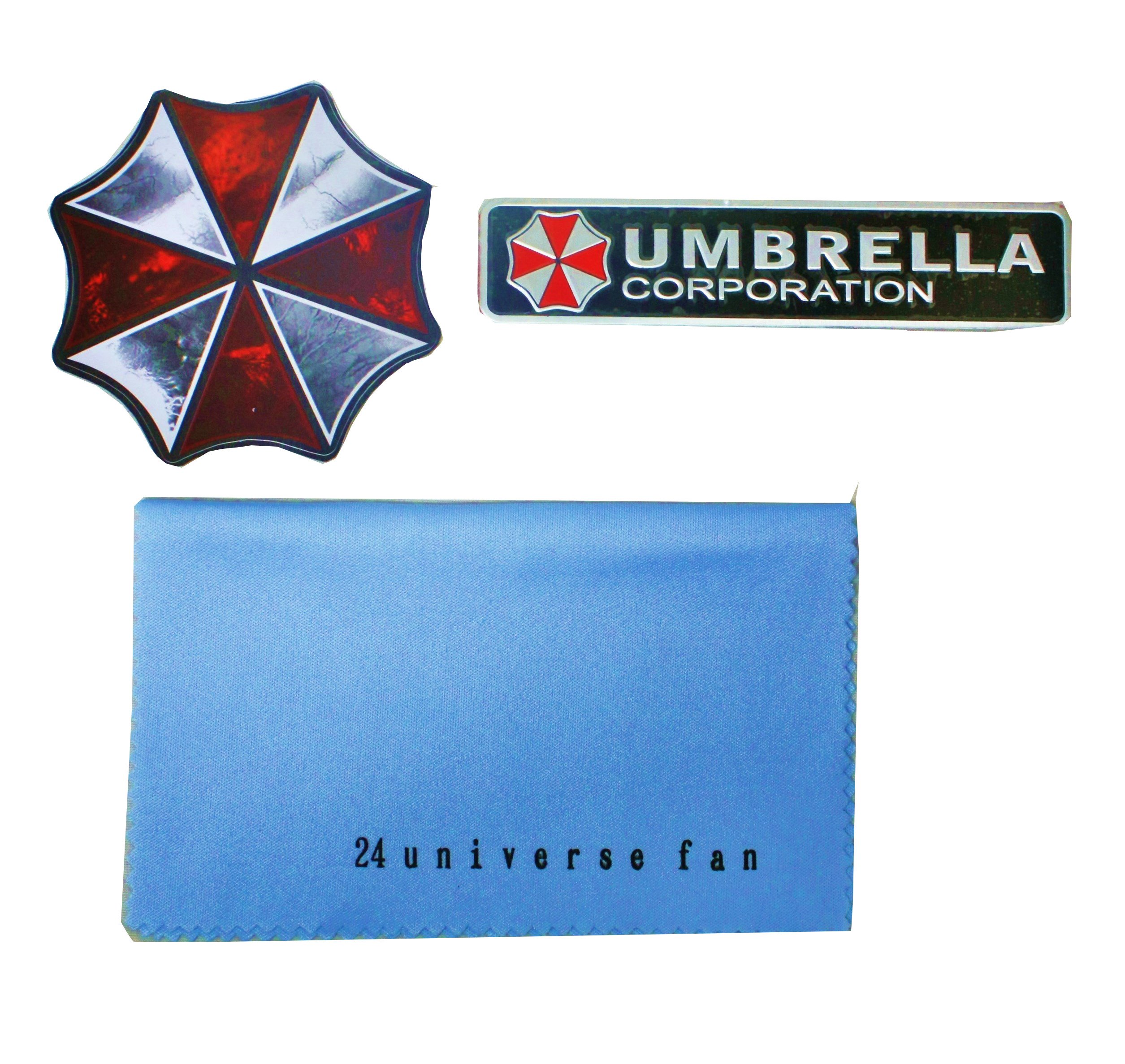 3 types of stickers Biohazard Umbrella Inc. metal emblem sticker & umbrella mark sticker and 24 universe Goods (rectangular)