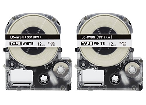 2PK Onirii Compatible Epson Labelworks Label Tape Cartridge LW-300 LW-400 LW-500 LW-600 LC-4WBN9(LK-4WBN) Black On White Label Maker Tape Refill Cartridge 12mmx26.2ft