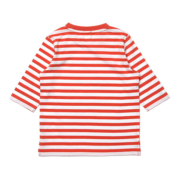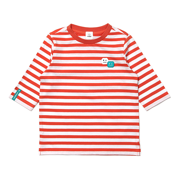 스트라이프티에 새로운 컬러감의 로비와펜장식을 달아,기본이지만 포인트가 되는 디자인의 스트라이프 7부티입니다.네크부분을 시보리립으로 처리하여 쉽게 늘어나지 않고 내구성이 좋으며,다양한 코디에 쉽게 연출하여 입기 좋습니다.