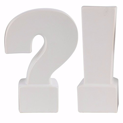 Benzara Ceramic Question & Exclamation Mark Bookends, White, Set of 2