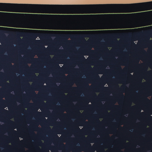 화사한 칼라감의 삼각 나염으로 젊 은 느낌의 아웃밴드 드로즈 제품입니다.