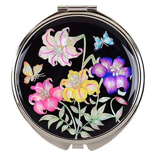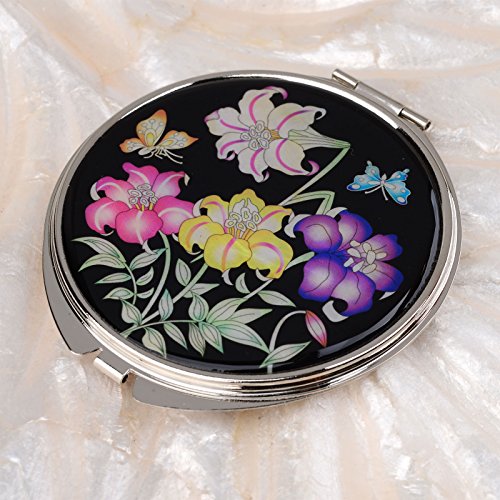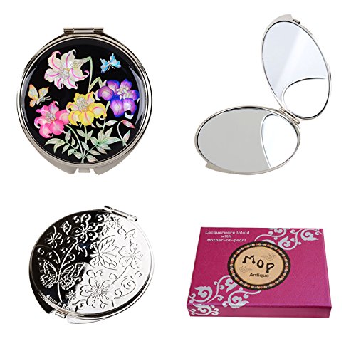 MOP Antique Lily Pocket Mirror Magnifying Compact Size Travel Makeup Folding Cosmetic Hand Mirror Mother of pearl