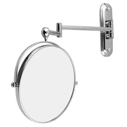 The swivel portion extends and retracts very easily and can be pushed so it is flush against the wall when not in use. The mirror extends to 12" from the base and the mirror is 8" in diameter.